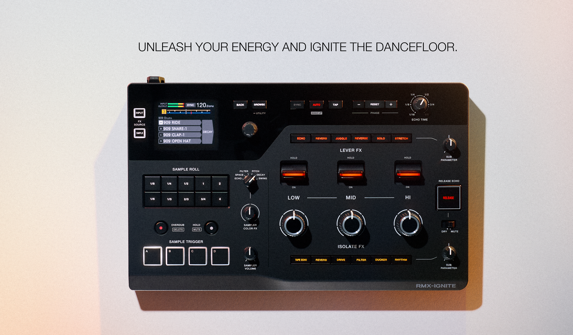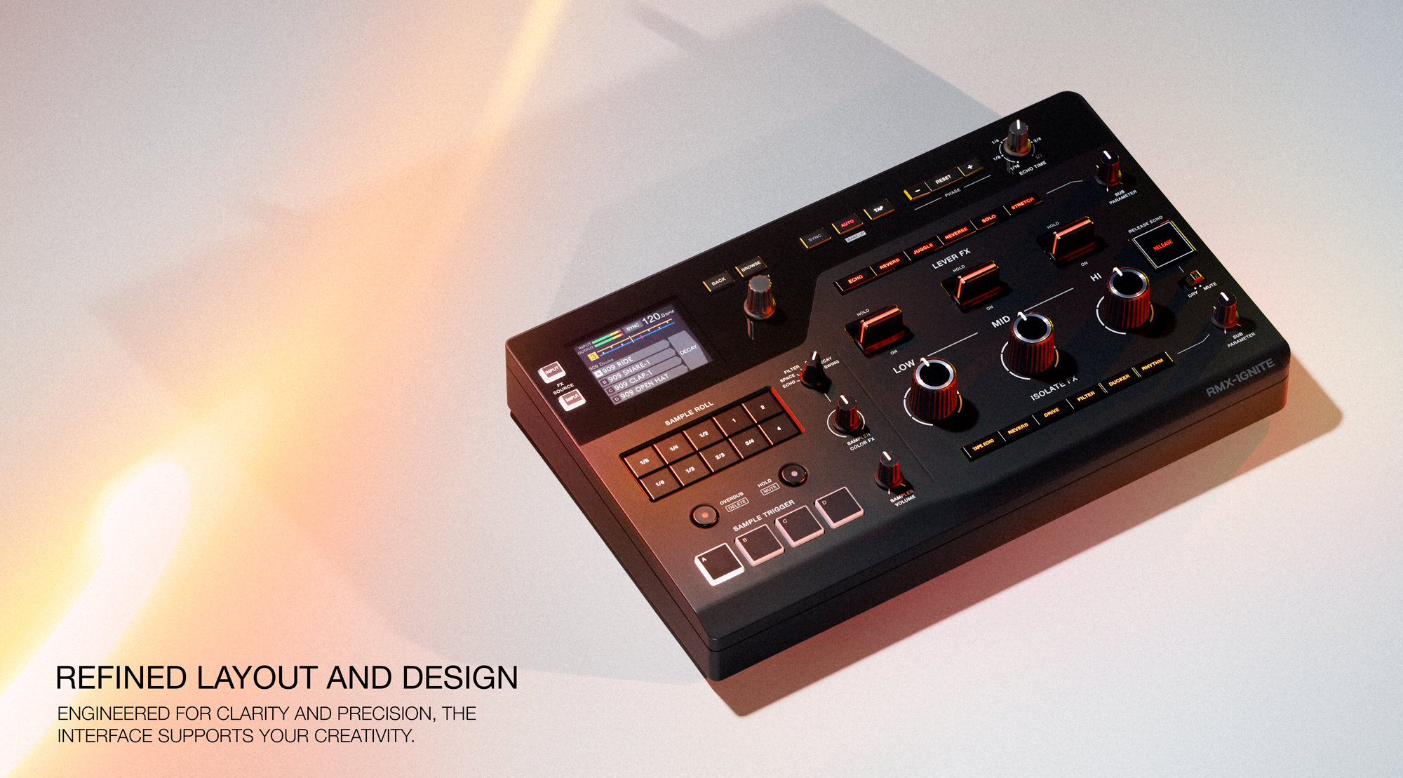Control 6 dedicated effects ā Echo, Space, Filter, Pitch, Decay, and Swing ā with 1 knob to instantly reshape samples with added depth or groove.