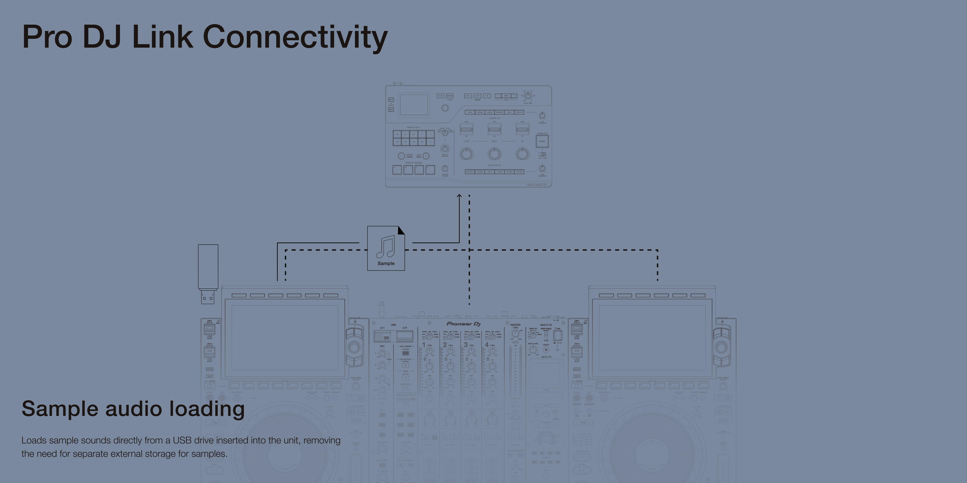 Play your own samples from a USB drive or any PRO DJ LINKāconnected multi player.